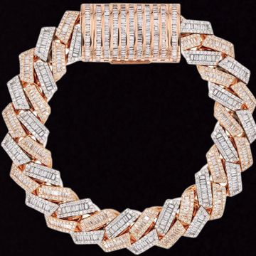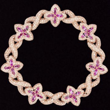 10K Rose & White Gold Iced Out Bracelet. This bracelet is customizable, so you can pick your length above. Once you selected your options, you can see the adjusted gram weight above the price. This bracelet comes in VS Clarity and G/H Color Quality Diamonds. All high jewelry comes with laboratory appraisal for insurance purposes.