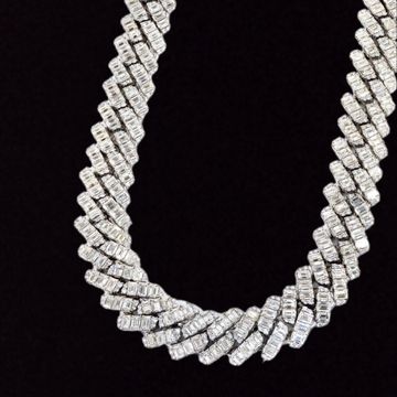This luxurious diamond necklace is a true statement piece, crafted with an exquisite arrangement of VVS1 clarity diamonds, known for their impeccable brilliance and near-flawless clarity. Each square setting holds meticulously cut stones, set in a seamless design that radiates elegance. The diamonds are graded E color, ensuring a bright, pure white sparkle, perfect for any special occasion.