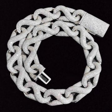 The 20MM Iced Out Paper Clip Infinity Chain 230g in 14K gold is a bold statement piece. Each 20mm link is covered in hand-set stones, giving it a brilliant shine. The unique paper clip design offers a modern twist, while the 14K gold adds luxury. Perfect for elevating any look, this chain combines style and elegance for those who want to stand out.