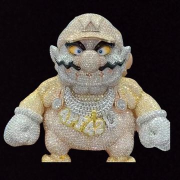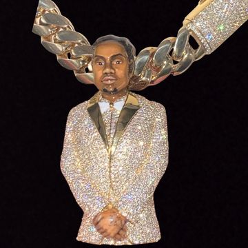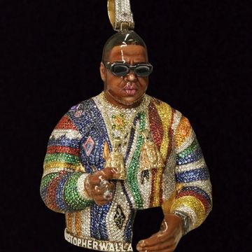Presenting the VVS Diamond Notorious B.I.G. Pendant, a tribute to the legendary Biggie Smalls. This unique piece features a highly detailed and colorful rendition of the iconic rapper, adorned with VVS clarity diamonds and vibrant gemstones. From the signature shades to the iconic Coogi sweater, every detail is captured with stunning precision.