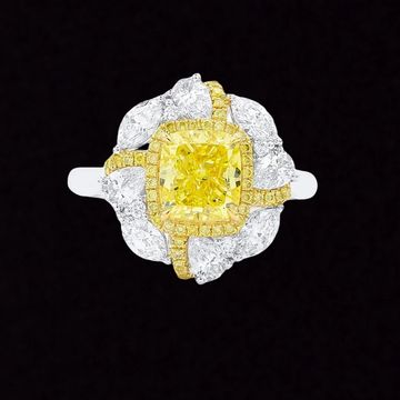 Indulge in the allure of our Natural Diamond Ring, featuring a 2.03-carat cushion-shaped Fancy Vivid Yellow Diamond. Certified by GIA , this rare gem radiates with exceptional clarity. Accented by 1.28 carats of yellow and white diamonds, the total weight is 3.31 carats. Set in luxurious 18K white and yellow gold, this elegant ring dazzles with brilliance and sophistication.