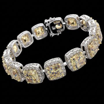 A luminous expression of modern haute joaillerie, The Aurora Cushion Bracelet is crafted in 18-karat white and yellow gold and set with a breathtaking sequence of cushion-cut yellow diamonds. Each radiant centre stone is framed by a delicate halo of brilliant white diamonds, amplifying its warmth and fire.