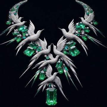 A breathtaking creation of haute joaillerie, The Emerald Flight Necklace is crafted in luminous 18-karat white gold and inspired by the graceful movement of birds in flight. Sculpted diamond-set birds soar across the neckline, forming an elegant composition of motion and harmony.
