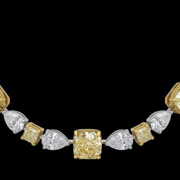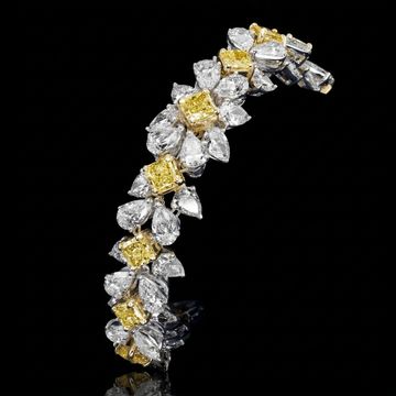 A dazzling expression of refined elegance, The Golden Radiance Bracelet is crafted in 18-karat white and White gold and adorned with an exquisite arrangement of brilliant-cut and pear-shaped diamonds. At the centre of each floral-inspired cluster, radiant yellow diamonds glow with warmth and brilliance, beautifully framed by shimmering white diamonds.